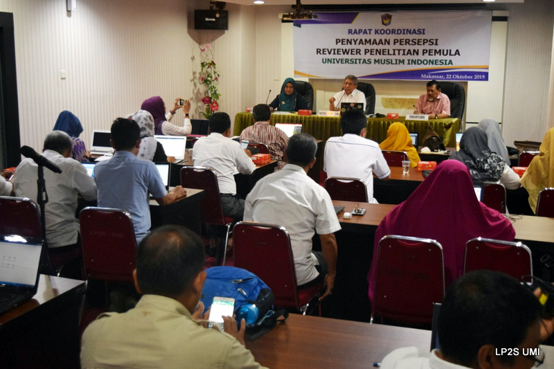 Lembaga Penelitian dan Pengembangan Sumberdaya (LP2S) UMI gelar rapat koordinasi penyamaan persepsi reviewer penelitian pemula. Kegiatan ini berlangsung di Aula LP2S UMI, Menara UMI Lt. 3, Selasa 22 Oktober 2019.