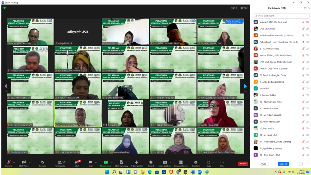 Ketua LP2S Prof. Dr. H. Baharuddin Semmaila, SE., M.Si memimpin penutupan pelatihan Applied Approach Angkatan XIII 2024. Ketua LP2S memberikan apresiasi kepada para peserta Applied Approach Angkatan XIII yang sudah mengikuti pelatihan dengan tekun selama 5 hari sejak tanggal 12 Januari 2024 hingga hari ini tanggal 19 Januari 2024. Berdasarkan monitoring panitia selama 5 hari, pelaksanaan Applied Approach dari 124 peserta dapat mengikuti pelatihan selama 5 hari. Dan dari XIII kali pelaksanaan Applied Approach angkatan XIII kami menyimpulkan bahwa: